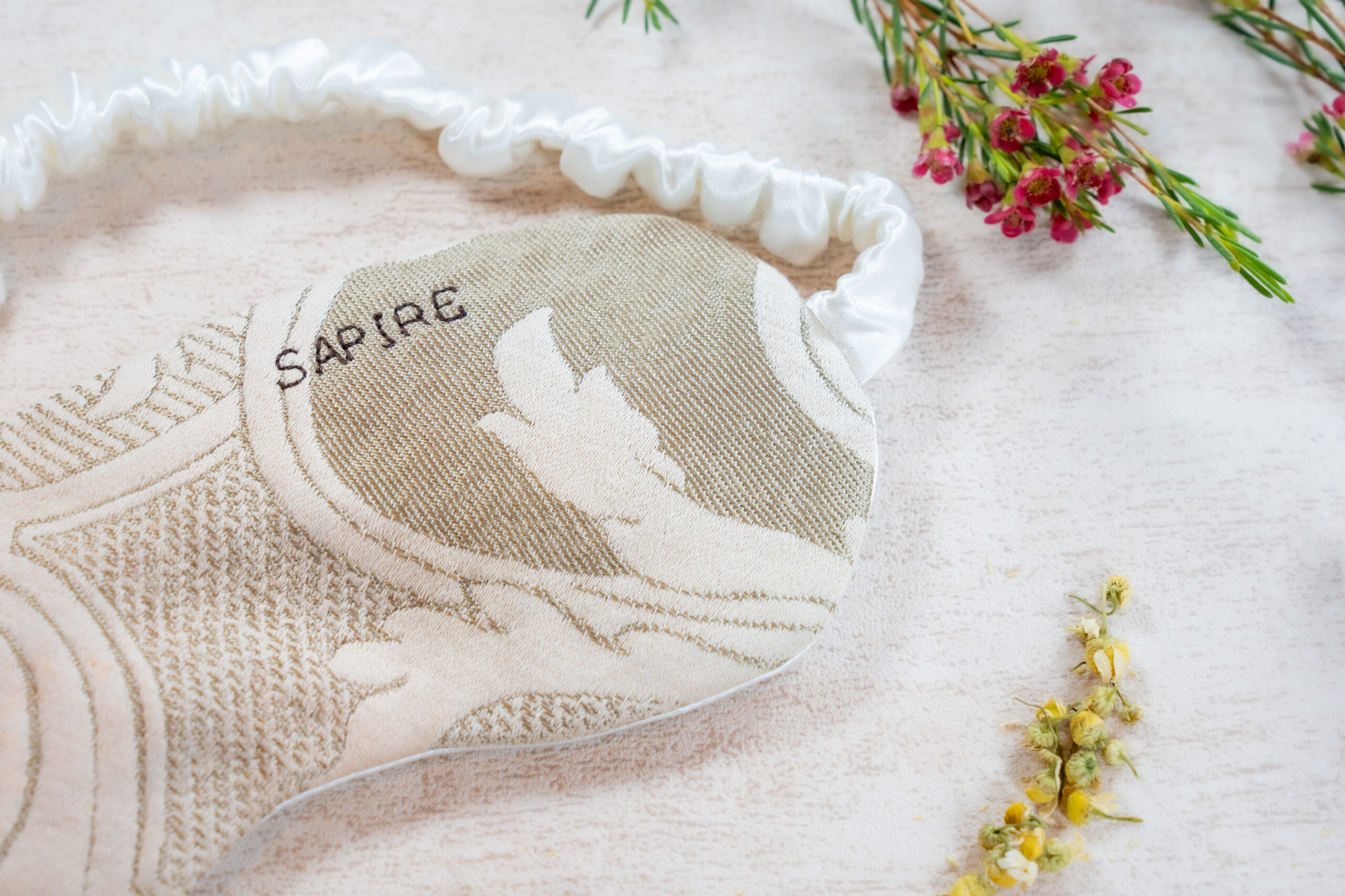 Les masques de relaxation Sapire sont entièrement créés à partir de tissus et mercerie upcyclés!